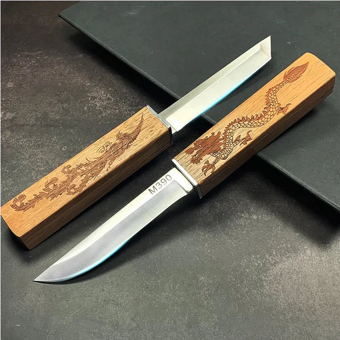 - Universalus peilių naudojimas - puikiai tinka namų virtuvėse, išvykose, kelionėse. Peiliai yra saugiai laikomi dėkle;