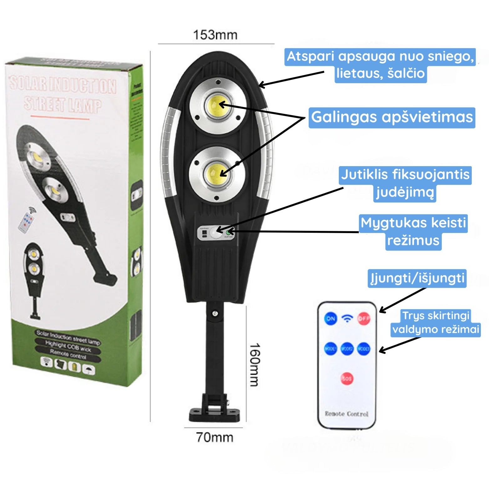 Su šiuo šviestuvu netgi nereikės sukti galvos, dėl didelių elektros sąskaitų. Trijų skirtingų rėžimų šviestuvas, įkraunamas saulės baterijomis, sumažins elektros sąnaudas ir apšvies Jūsų kiemą visada, kai reikės!