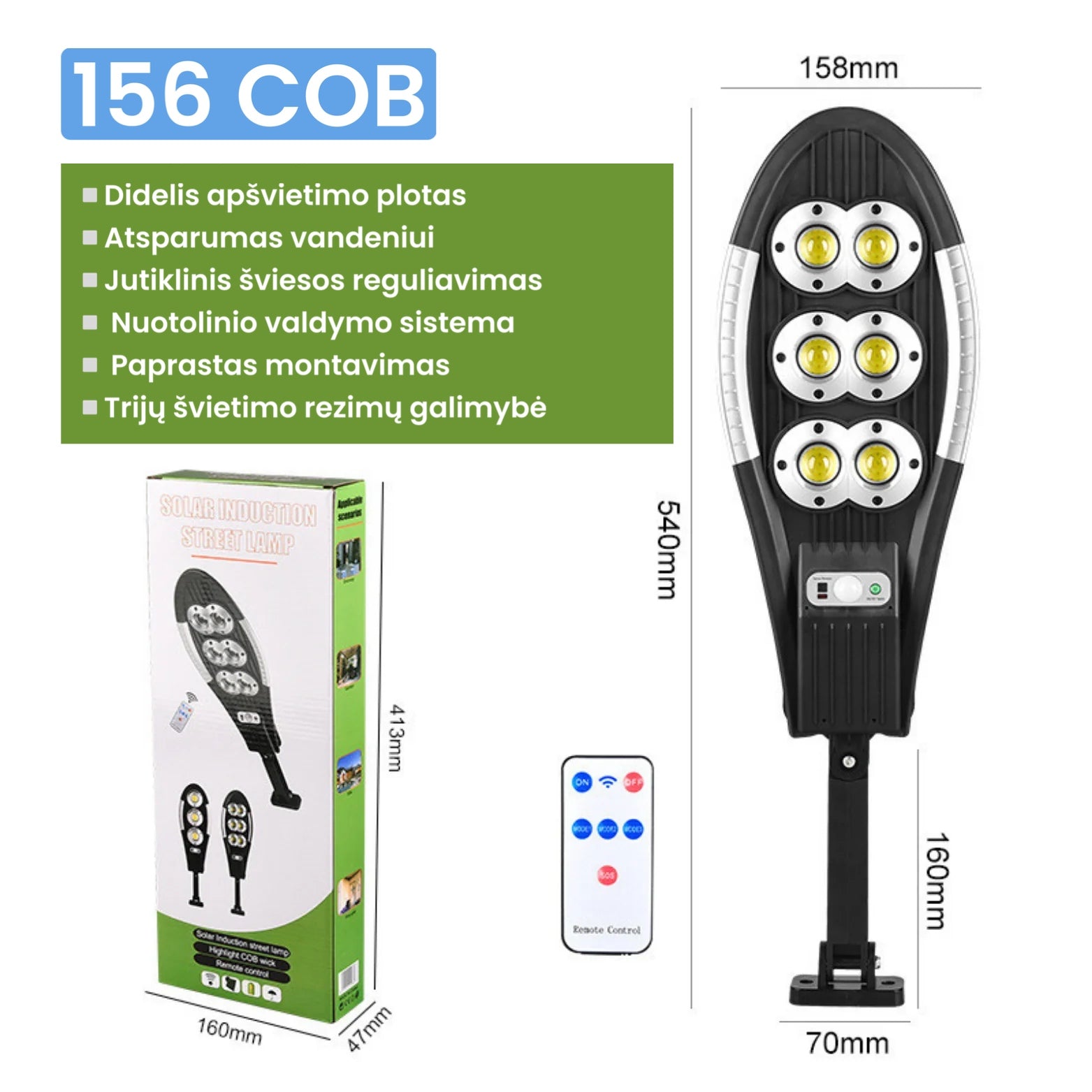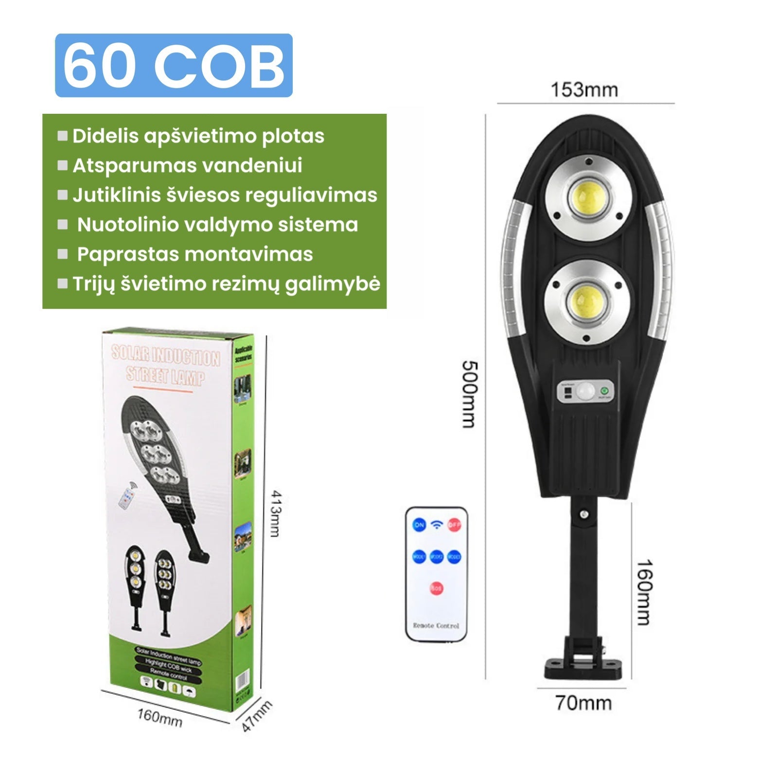 LED Lauko Šviestuvas su saulės baterijomis