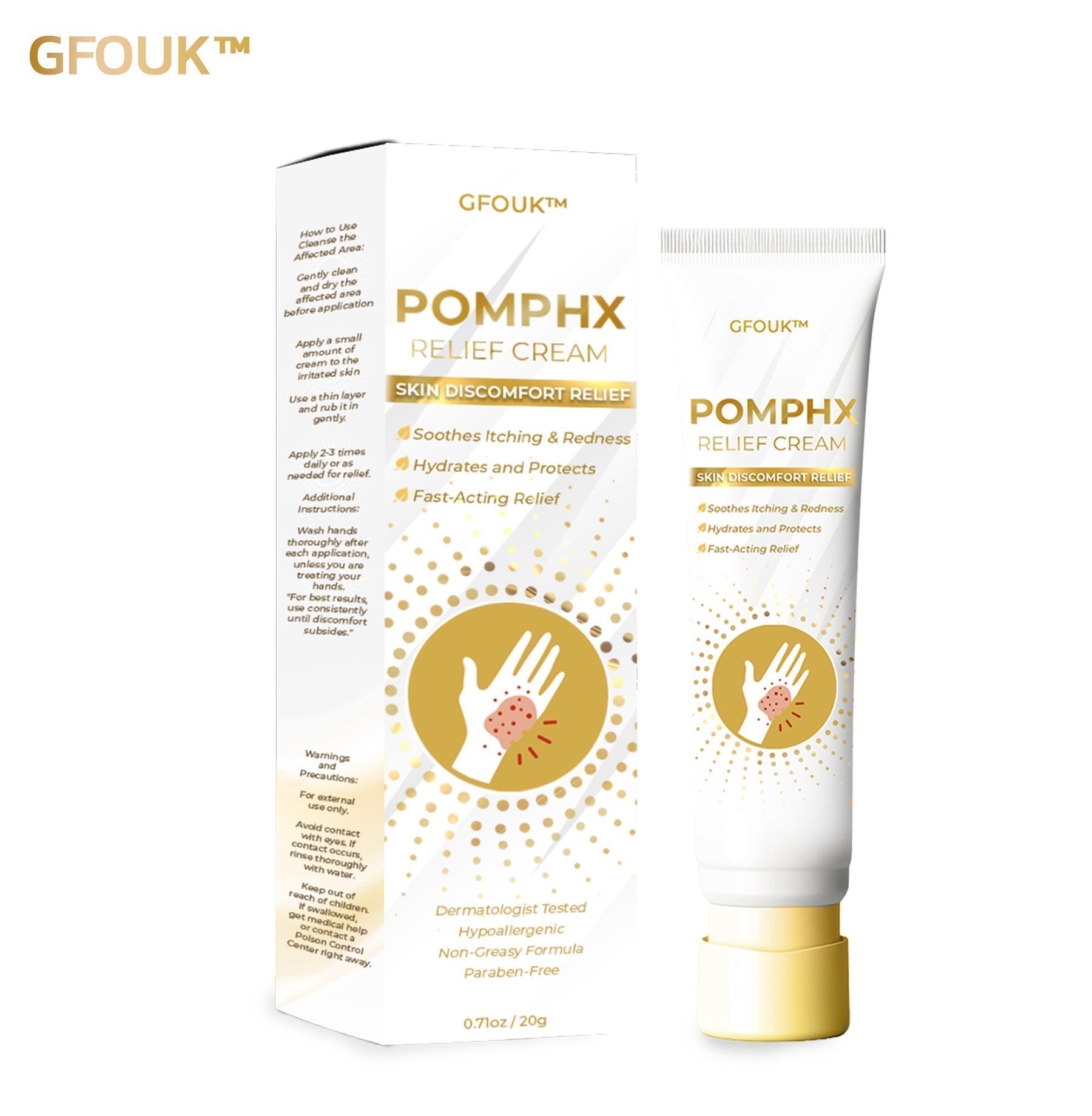 GFOUK™ PomphX Relief Kremas – tai klinikiniais tyrimais patvirtinta priemonė, kuri efektyviai kovoja su įvairiomis odos problemomis, tokiomis kaip egzema, bėrimai, intertrigo ir pomfoliksas. Ši unikali formulė suteikia greitą palengvėjimą, ramina sudirgusią odą ir padeda atkurti natūralų odos balansą.