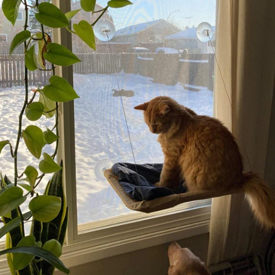 - Hamakas yra tvirtinamas dviem vakuuminiais siurbtukais. Jį galite prikabinti prie lango ir leisti katei mėgautis lauko vaizdu. Katė jausis saugi ir rami!