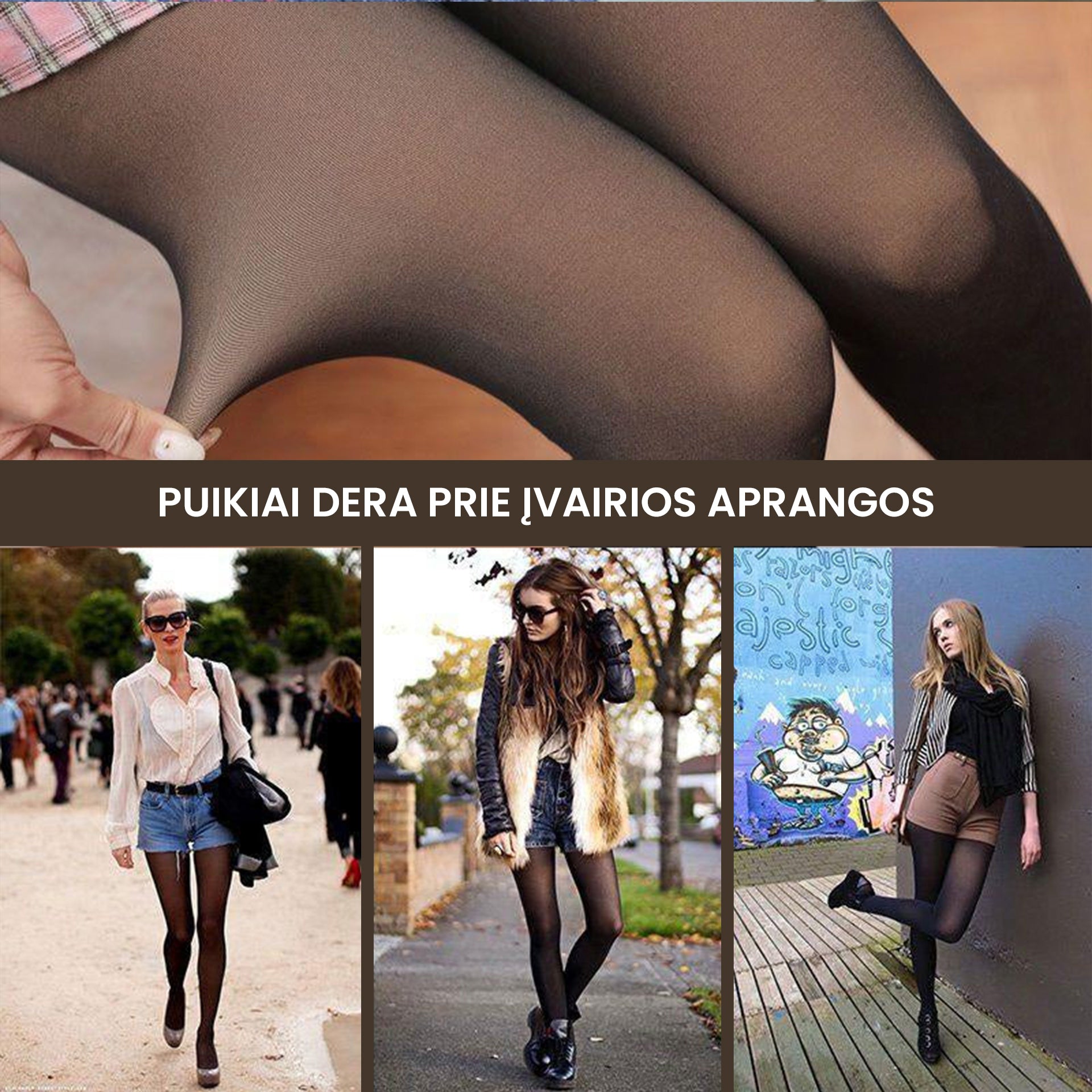 - Puikiai dera prie įvairios aprangos. Pėdkelnės tinka nešioti prie suknelių, sijonų, ilgų megztinių bei švarkų.