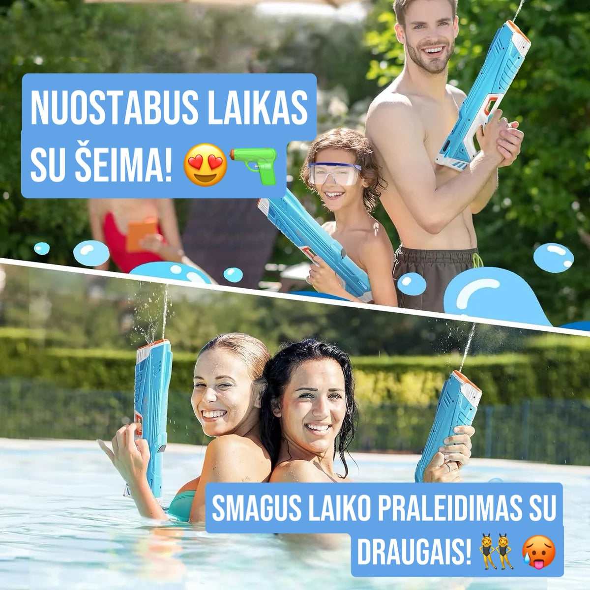 🔥 Automatinis įkrovimas - Aqua Blaster turi automatinį perkrovimą. Tiesiog panardinkite pistoletą į vandenį ir leiskite, kad rezervuarai užsipildytų patys.
