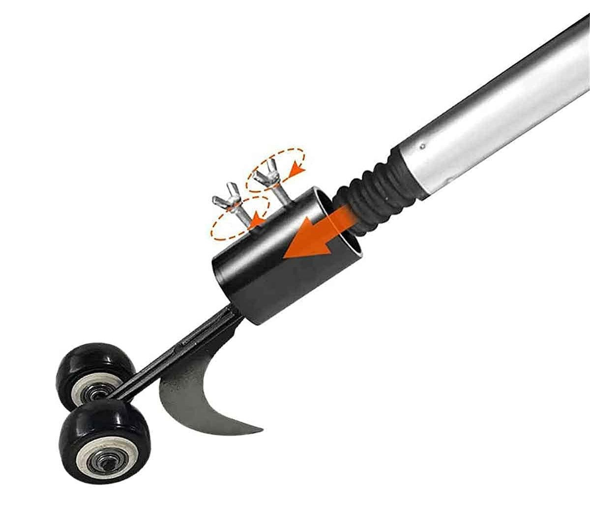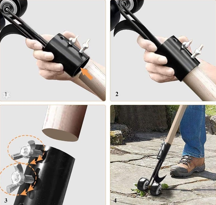 Ravėjimo įrankis turi varžtinę sąsają, į kurią tereikia įdėti tinkamą medinę lazdelę ir ją priveržti. Tai labai paprasta ir efektyvi piktžolių kontrolės sistema.