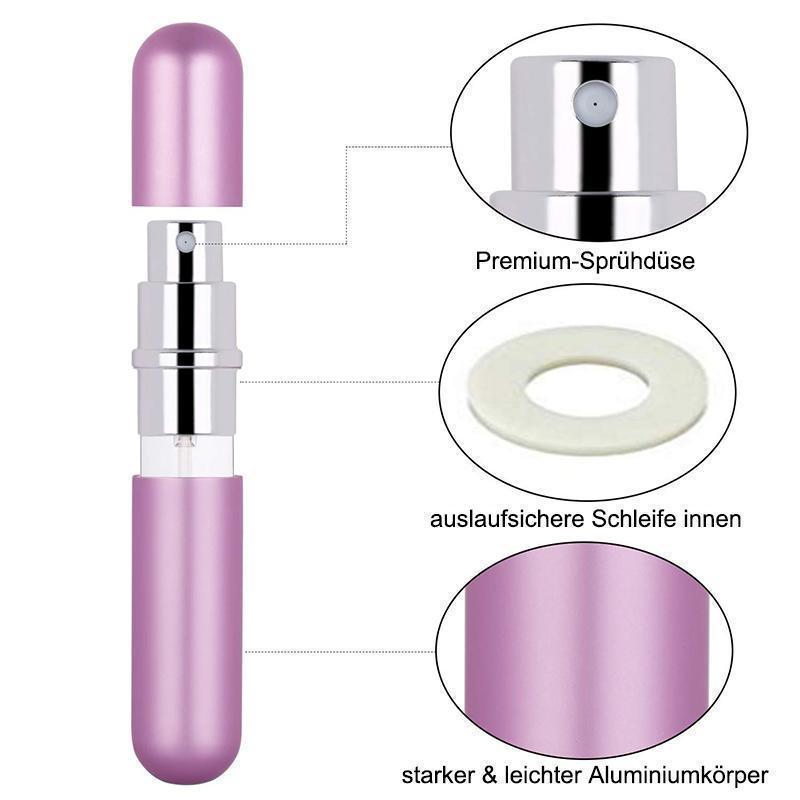- Daugkartiniai kvepalų flakonai, kurie yra užpildomi tiesiai iš kvepalų buteliukų. Aukštos kokybės aliuminio korpusas apsaugo viduje esantį skystį, yra atsparus smūgiams.
