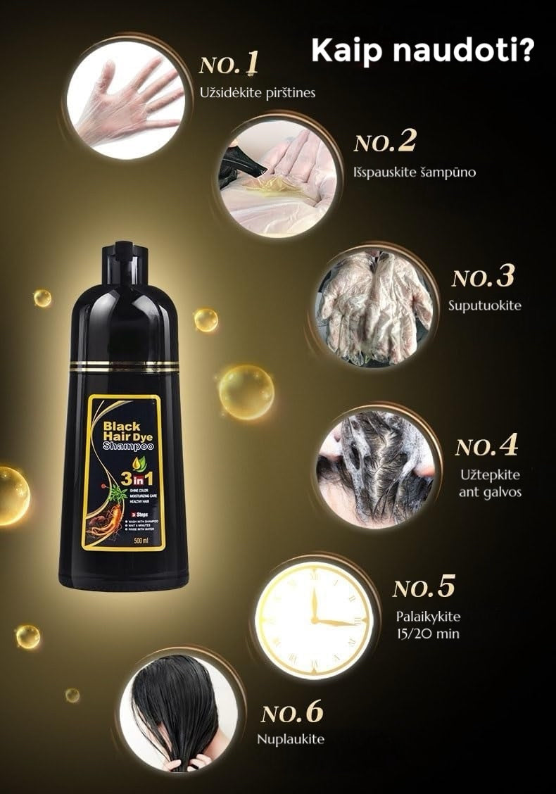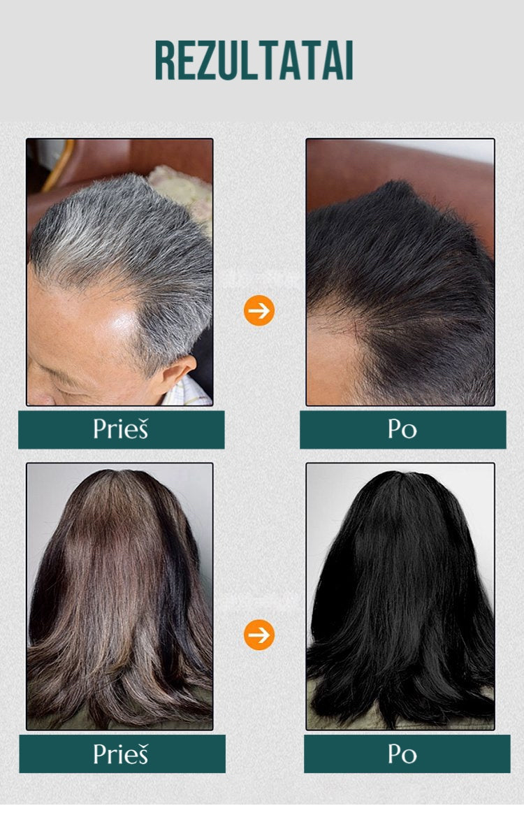 Juodo Plaukų Magija: 100% Pilnos Pilkos Plaukų Dangos Šampūnas