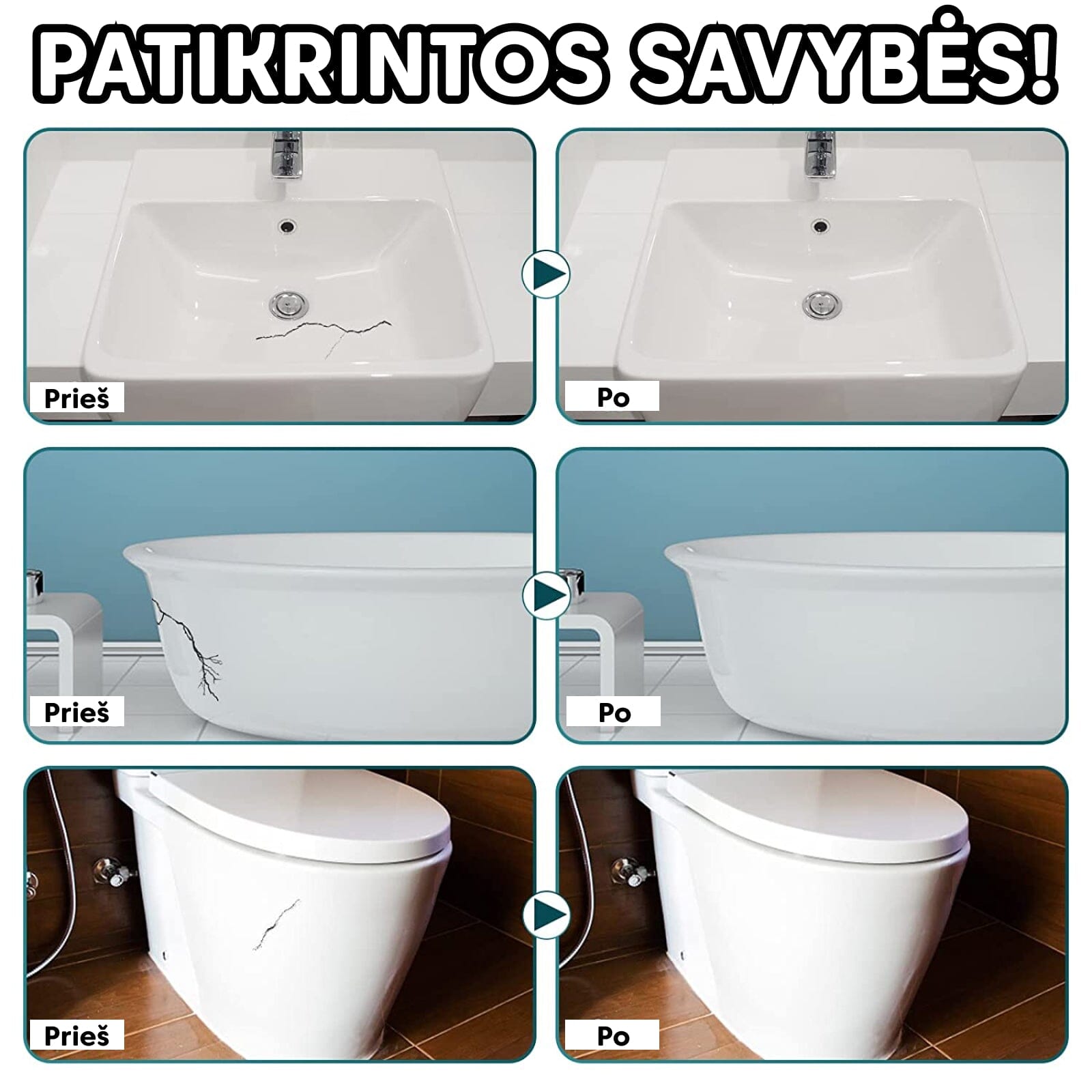 Vienas buteliukas tiks daugkartiniam naudojimui, lengvai restauruos plyteles, marmurą, porcelianą, tualetus, vonias, praustuvus ir kitas vietas.