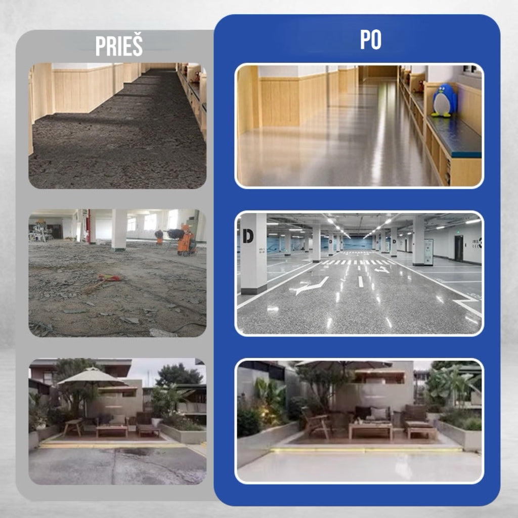 ✅ Universalus pritaikymas – tinka cemento, plytelių ir marmuro grindims, naudojama tiek viduje, tiek lauke.