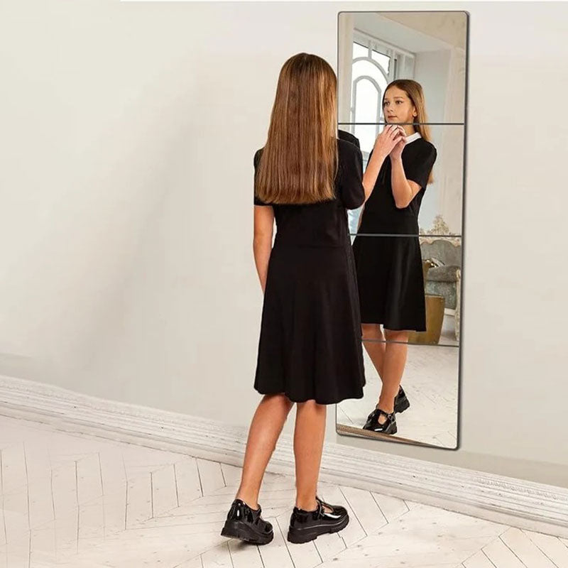 - Veidrodį galima priklijuoti prie durų, sienos ar spintos. Tai puikus būdas mažiems kambariams, kuriuose nėra vietos pastatomiesiems veidrodžiams. Šis veidrodis pagamintas iš aukštos kokybės itin skaidrių medžiagų, kurios leidžia matyti ryškų veidrodyje atspindinį atvaizdą.