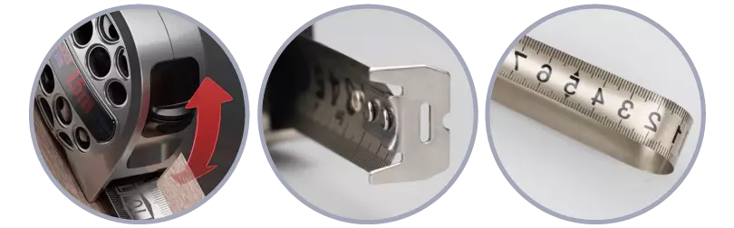 Nulinio taško korekcijos kabliukas leidžia atlikti tikslius matavimus iš bet kurio atskaitos taško, net jei paviršius nėra visiškai lygus. Ši matuoklio funkcija užtikrina, kad kiekvieną kartą atliksite tikslius matavimus, todėl sutaupysite laiko ir pastangų vykdydami projektus ir palengvinsite savo darbą