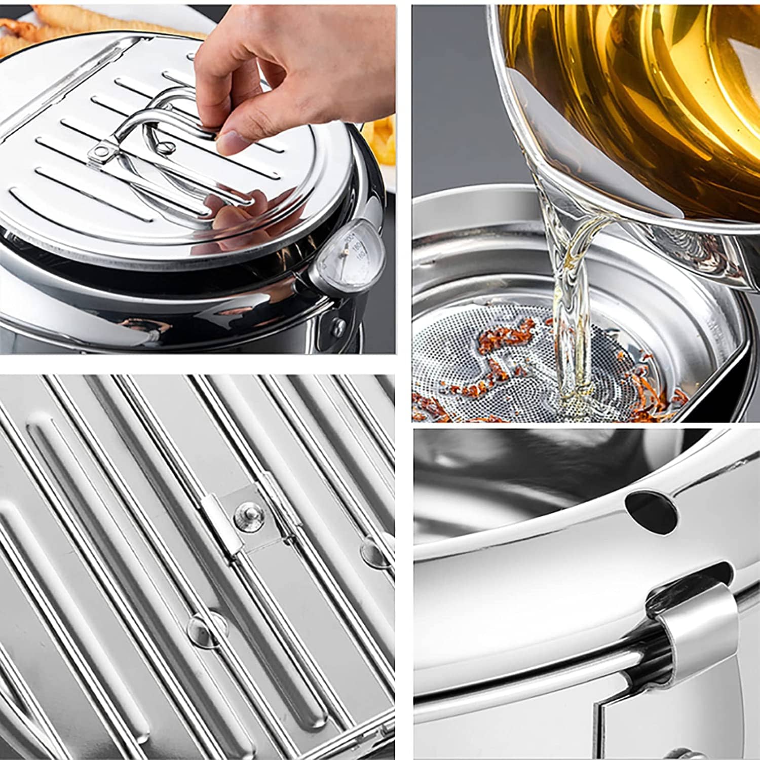 TIKRA TEMPERATŪROS KONTROLĖ: Pridėtas termometras leidžia tiksliau kontroliuoti aliejaus temperatūrą. Pagal aliejaus temperatūrą maistas gaminamas geriau, kad būtų geriausio skonio, o maistas būtų gardesnis.