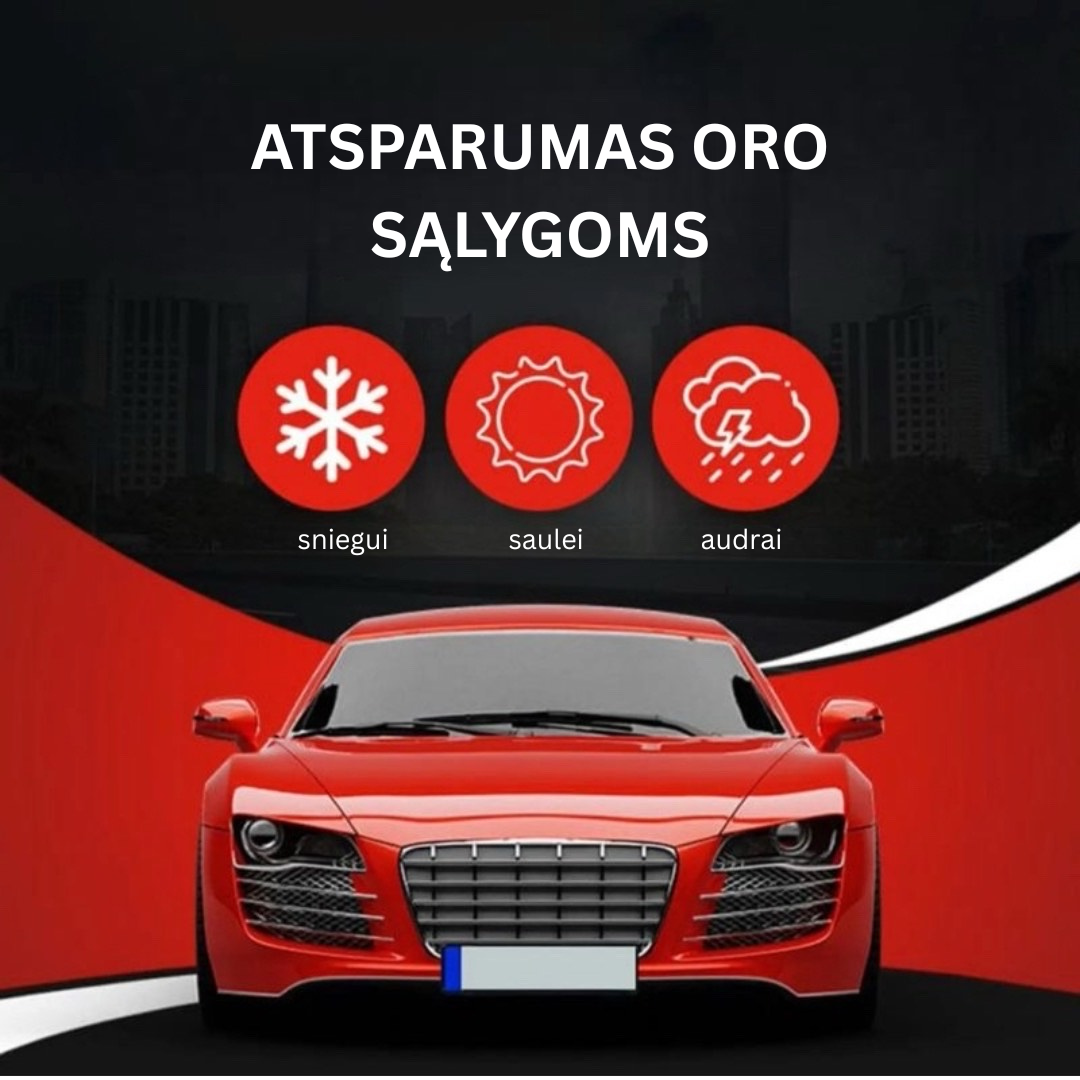 Lietus, sniegas ar stipri saulė? Jokių problemų! Mūsų purškiklis atsparus visiems orams ir išlieka aktyvus iki 6 mėnesių, neblunka ir nepraranda efektyvumo.