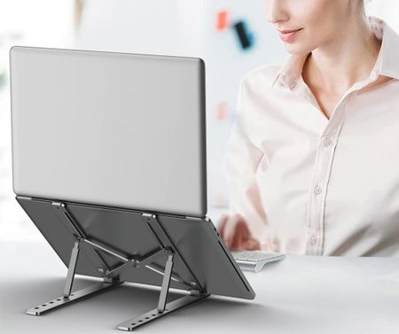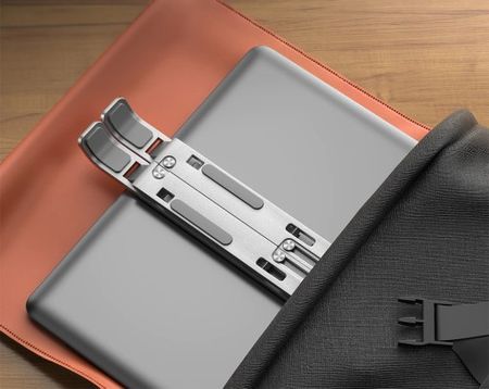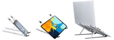 - Kompaktiškas ir itin lengvas kompiuterio stovas gali būti sulankstomas ir nešiojamas. Sulankstyto stovo išmatavimai - 24,2 cm x 5,1 cm x 2,3 cm. Idealiai tinka žmonėms daug keliaujantiems verslo reikalais;