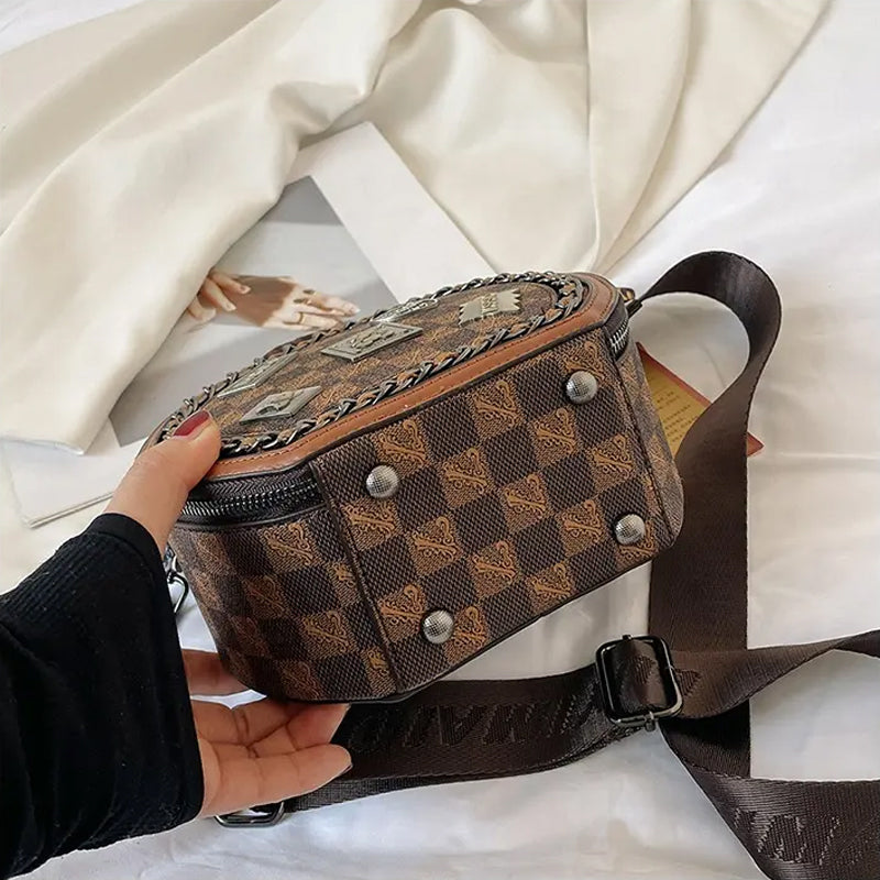 - Patogi ir kompaktiška rankinė per petį, kurioje telpa visi reikalingi kasdieniniai daiktai. Kuriant rankinės dizainą daugiausiai dėmesio buvo skirta retro stiliui bei išskirtinėms detalėms. Dėl mažo rankinės dyžio užmiršite, nepatogias, dideles ir sunkias rankines. Išskirtinis rankinės modelis bei dizainas papildys Jūsų rankinių kolekciją!