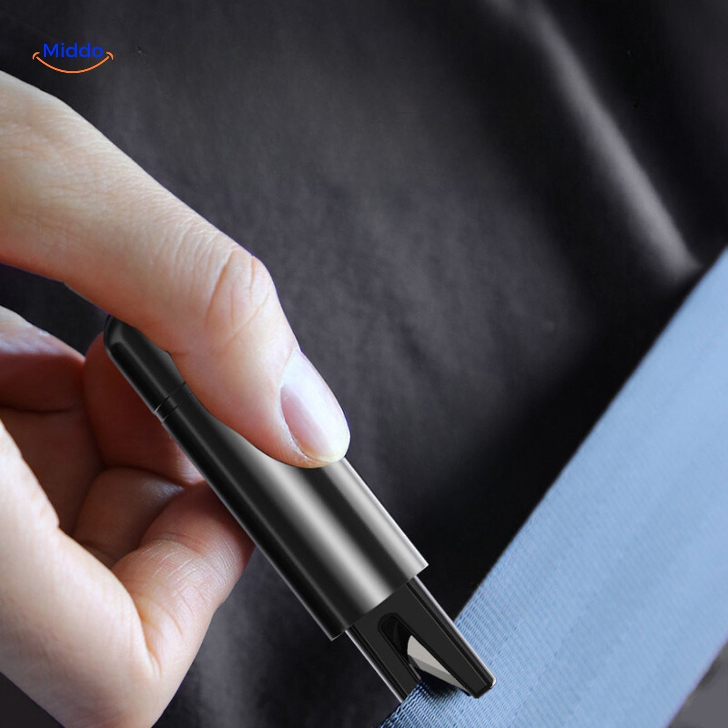 ✂️ Aštrus saugos diržų pjoviklis - Jei diržas užstringa, aštrus pjoviklis per akimirką jį perpjaus ir leis greitai išsilaisvinti.