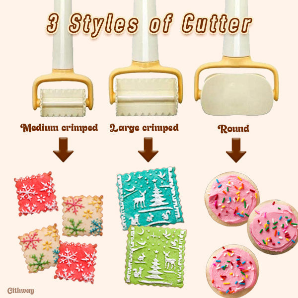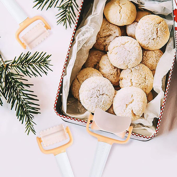 - Net trys skirtingos volelių formos - apvali ir dvi skirtingo dydžio kvadratinės formelės leis išgauti tobulos formos sausainius! Užtenka vos vieno perbraukimo ir volelis puikiai išformuoja jums pasirinktos formos sausainius kartu atskirdamas tešlos perteklių. Voleliai tinka įvairiems kepiniams gaminti - pyragėliams, koldūnams, sausainiams, bandelėms.