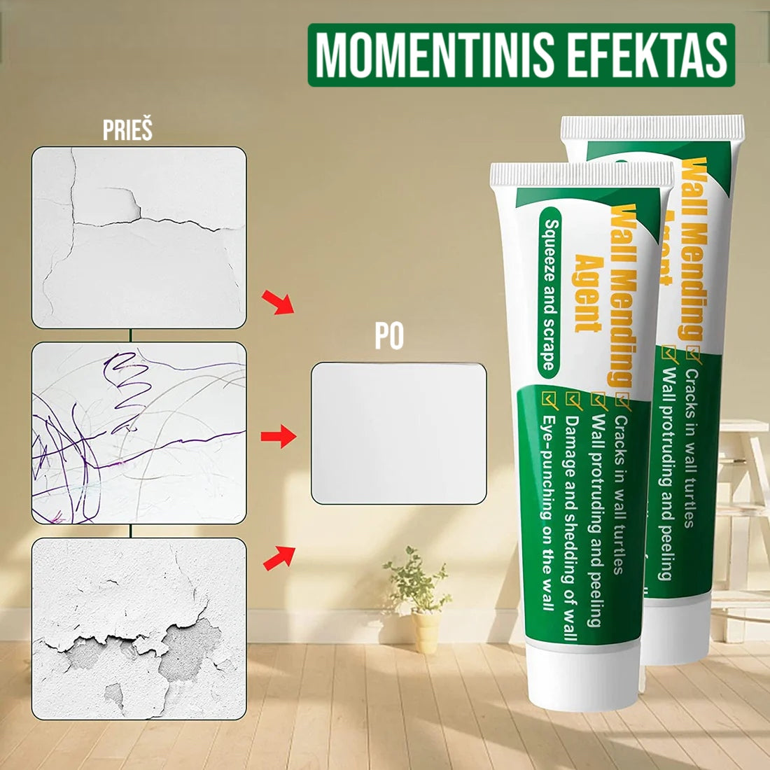 ✔️ Taiso viską nuo įtrūkimų, lupimosi, burbuliukų, kreidos ir pudros.