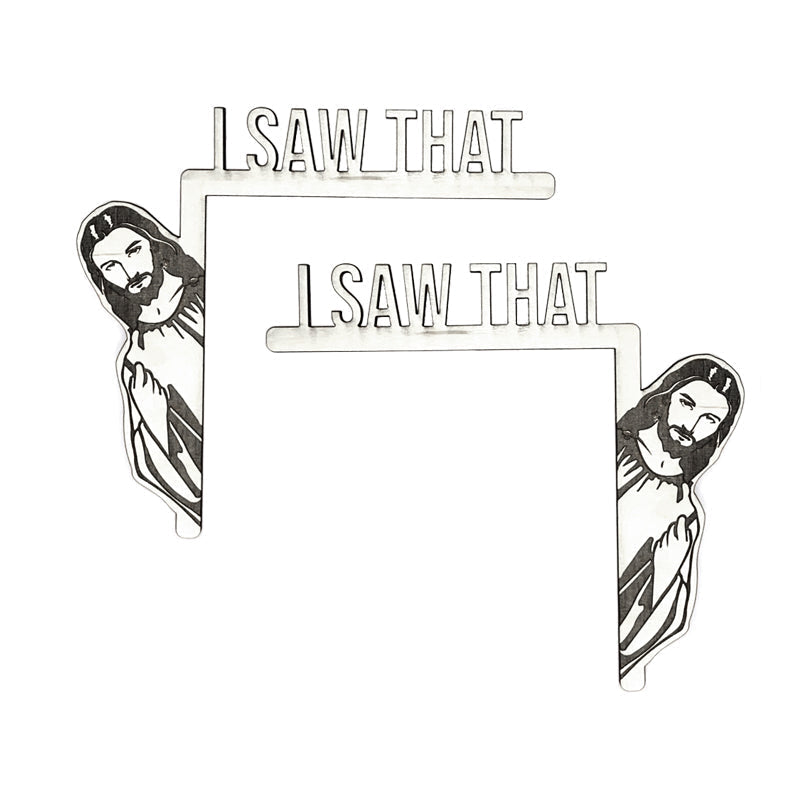 - Frazė "I saw that" verčiasi - "aš tai matau", vadinasi jūs matote Dievą! Dekoracija puikiai tinka gimtadienių, vakarėlių bei įvairių švenčių metu naudoti.