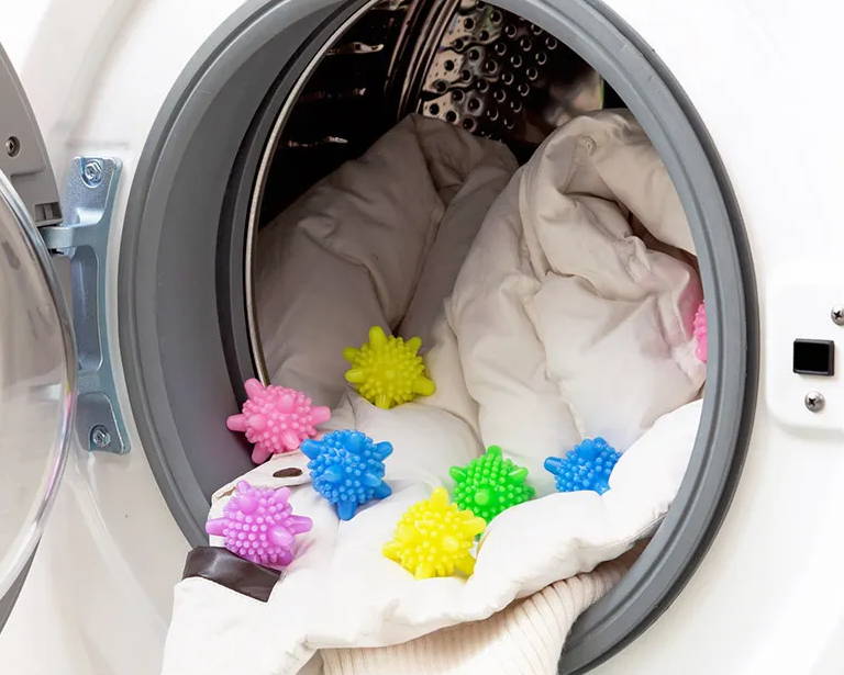 - Unikalūs skalbiniams skirti kamuoliukai neleidžia skalbimo metu susipainioti drabužiams. Puiki pagalbinė priemonė turintiems augintinių, kurie šeriasi! Tai visiškai saugūs, ekologiški bei hipoalergiški kamuoliukai, kurie pagaminti iš silikono ir plastiko. Yra daugkartinio naudojimo, saugūs vaikų bei kūdikių drabužiams skalbti.