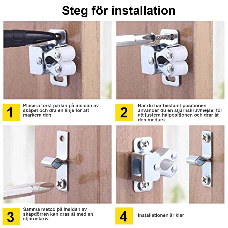 - Pamirškite nepilnai užsidarančias spintelių dureles! Šis durelių laikiklis užfiksuoja dureles ir neleidžia joms atsiverti. Puikiai sulaiko daiktus esančius spintelėse ir neleidžia jiems iškristi.