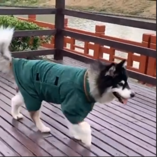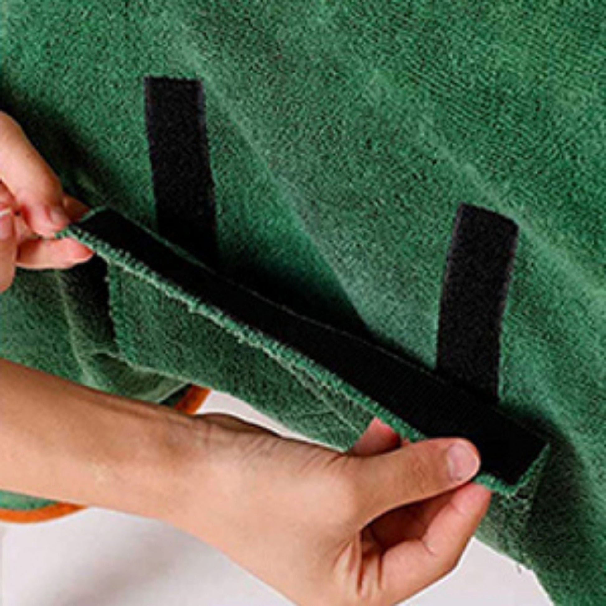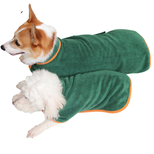 - Šį chalatą galima vilkėti, net ir esant lietingomis dienomis lauke! Specialus rankšluosčio audinys ypatingai greitai sugeria vandenį ir pašalina drėgmę. Chalatas yra patogiai uždedamas per galvą ir užfiksuojamas velcro lipdukais, kad nenukristų nuo kūno. Chalatas yra ypatingai naudingas po maudynių duše arba ežere. Apjuosdami augintinį suteiksite jam šilumos bei jaukumo.