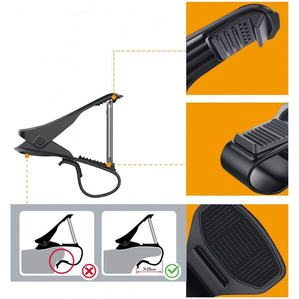 Telefono laikiklis užtikrina, kad jūsų telefonas bus patogiai matomas, todėl galėsite nenukreipti akių nuo kelio. Tai leidžia saugiai naudotis navigacija, sumažinant riziką jums ir kitiems eismo dalyviams.