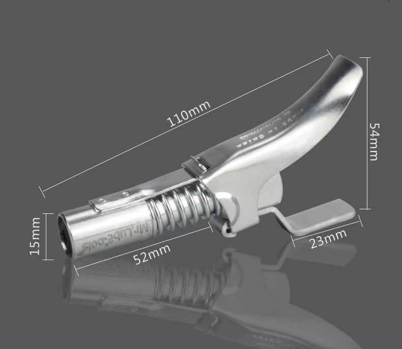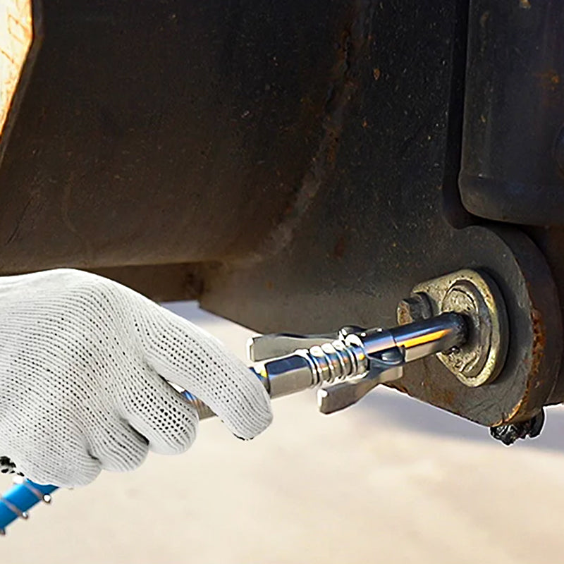 Tinka aukšto slėgio ir didelės apkrovos darbams: spyruoklinis grūdinto plieno tepalo pistoleto antgalis su užfiksuotais žandikauliais sukurtas taip, kad būtų atsparus lūžiams, nuotėkiui ir sukimui iki 690 barų (10 000 psi).