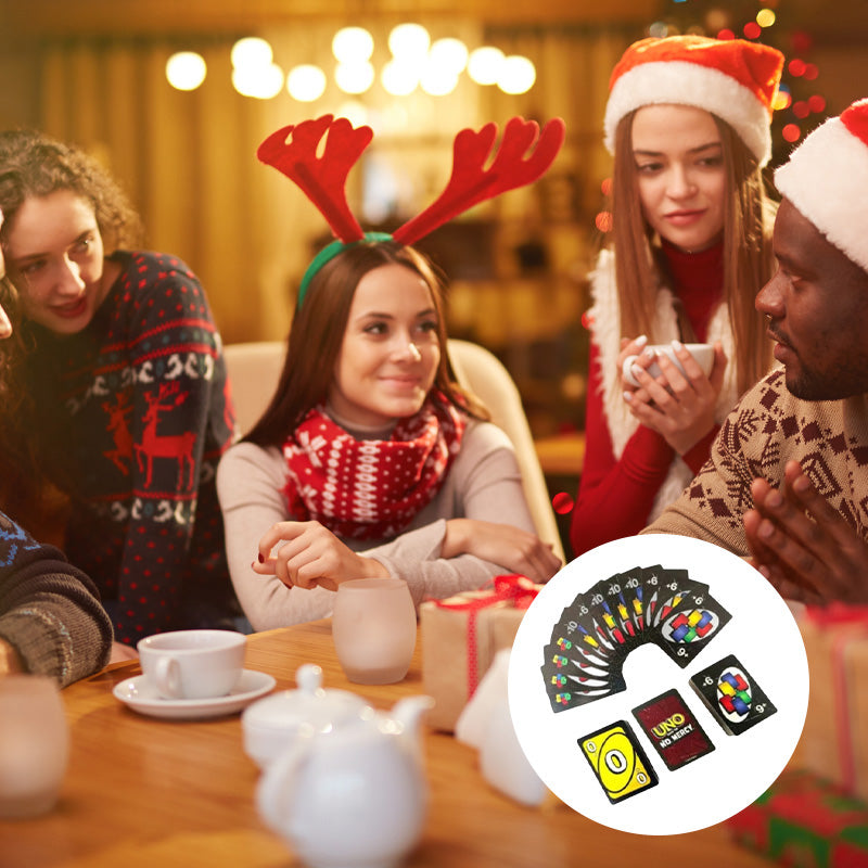 🔴🟢🔵🟡 112 kortų kaladė: Įvairios spalvos – raudona, žalia, mėlyna ir geltona – bei 8 papildomos kortos: 2 kortų paėmimo, apsukimo ir praleidimo kortos.