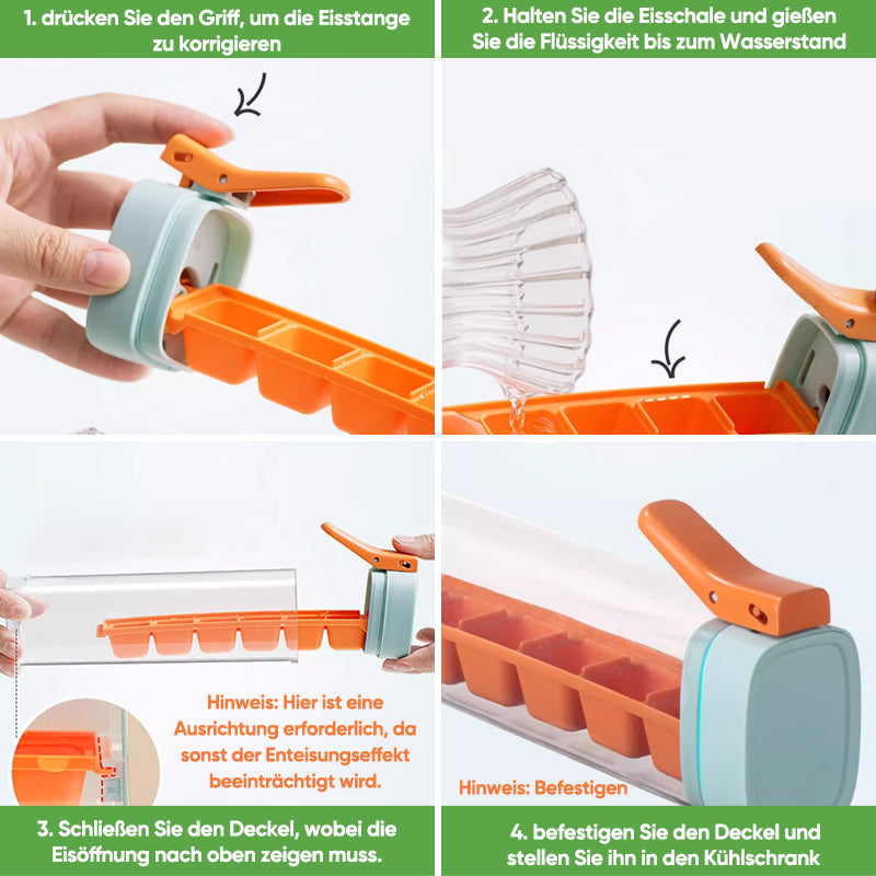 Uždaras dėklas apsaugo ledukus nuo bakterijų ir pašalinių kvapų. Užtikrina ilgesnį šviežumo terminą. Dėkla galima plauti indaplovėje. Jei dėklas nėra naudojamas, laikykite jį sausoje vietoje.