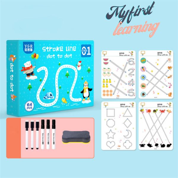 Pakuotę sudaro: 1x daugkartinio naudojimo knyga (64 puslapiai), 6x minkšti pieštukai, 1x trintukas.