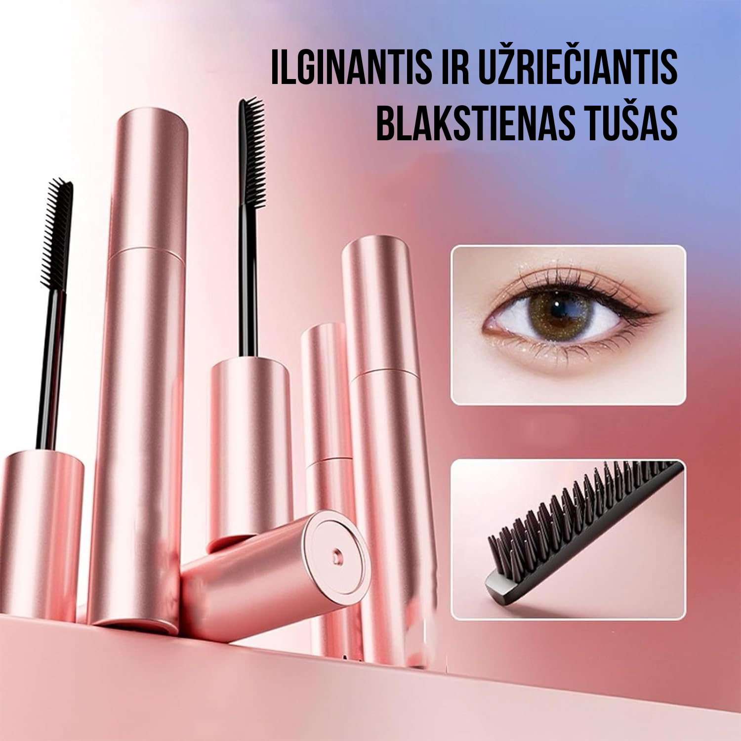 Vandeniui atsparus, nepaliekantis dėmių ir ilgai išliekantis blakstienų tušas.