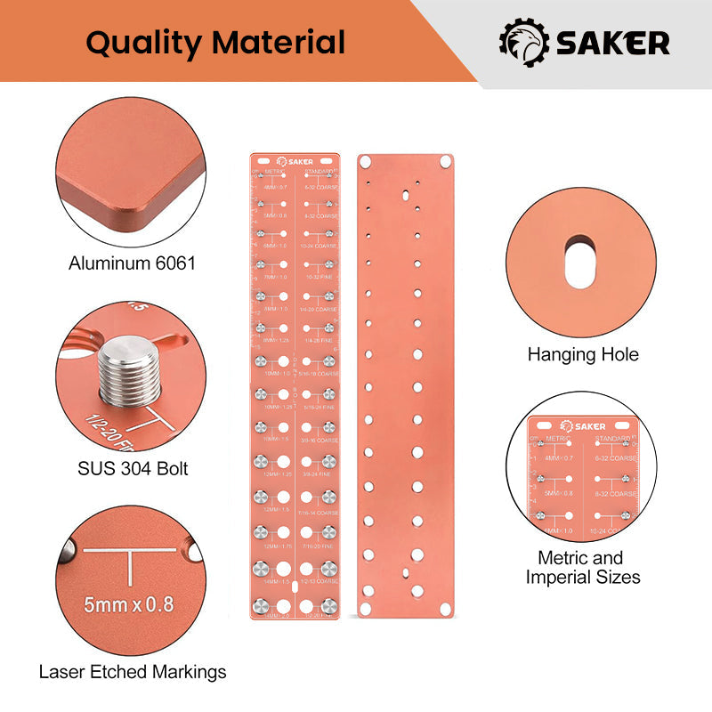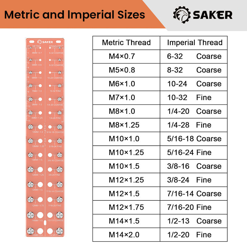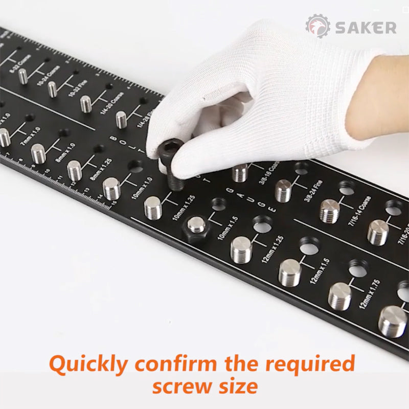 - Patvarios lazerių apdirbtos colinės ir centimetrinės skalės leidžia tiksliai ir greitai nustatyti įvairių sriegių dydžius. Kompaktiškas tikrintuvo dydis leidžia turėtį jį bet kurioje darbo vietoje!