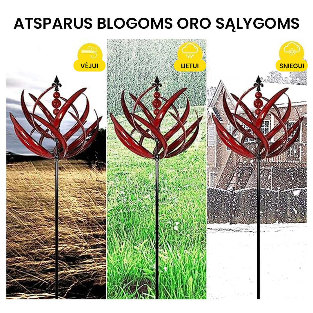 - Tai puiki dekoracija, kuri suteiks jūsų kiemui išskirtinumo ir papildomo žavesio! Dekoracija pagaminta iš aukštos kokybės metalo, kuris yra tvirtas ir ilgaamžis. Pučiant vėjui, suktuvas lengvai sukasi ir primena žydinčią gėlę.