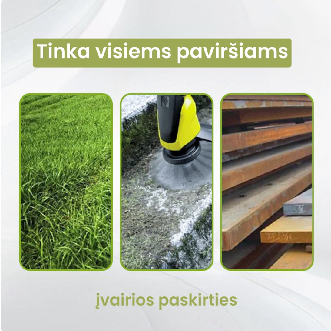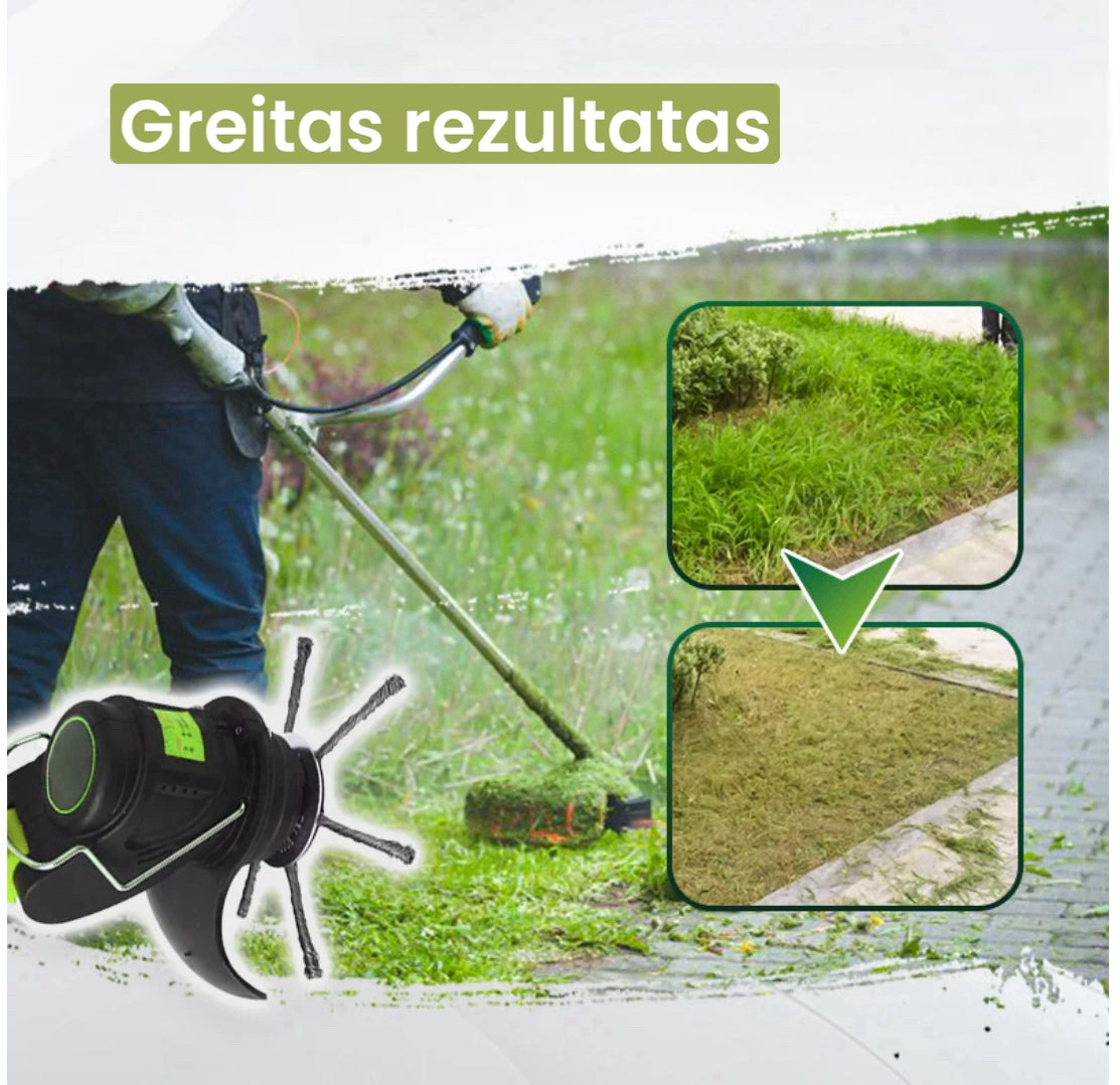 Tvirta plieno konstrukcija 🛠️ – užtikrina ilgaamžiškumą ir efektyvumą, net ir susiduriant su storomis piktžolėmis ar sunkiai įveikiamu žolės sluoksniu.