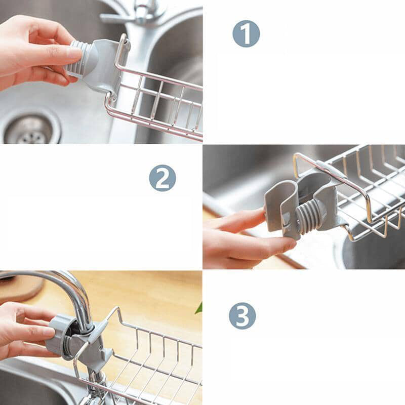 - Kokybiška lentynėlės tvirtinimo sistema užtikrina stabilų šluosčių bei bei kitų priemonių laikymą. Norint pritvirtinti laikiklį ant krano, nereikia jokio papildomo montavimo! Laikiklis turi suktuką, kuris apima kraną ir tvirtai yra prisukamas. Laikiklį galima naudoti ir vonios kambaryje.