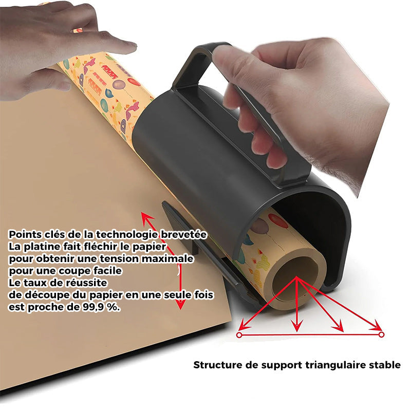 Švelnus popieriaus nupjovimas. Aparate yra skustuvas, kuris lengvai nupjauna visų rūšių vyniojamąjį popierių. Tiesiog uždėkite jį aplink vyniojamojo popieriaus vamzdelį ir stumkite žemyn, kad nupjautumėte.