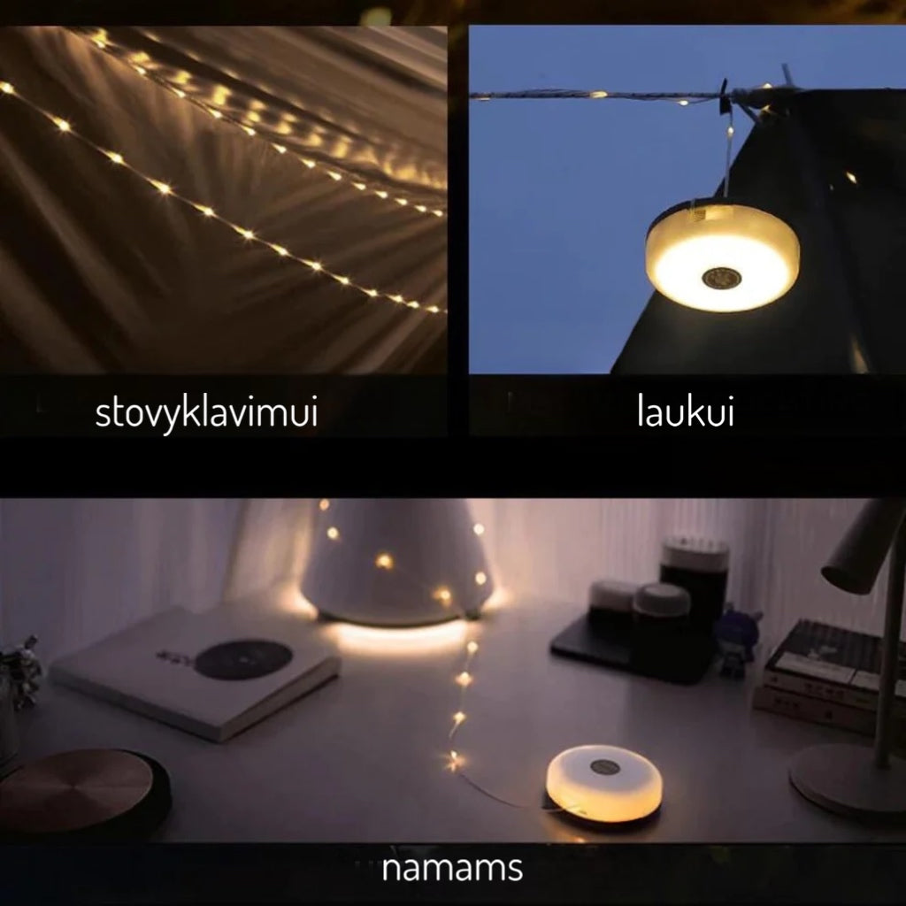 ✔️ Įvairūs šviesos režimai - Mėgaukitės pritaikomu apšvietimu su keliais režimais. Šie žibintai suteikia lankstumo, kad sukurtumėte puikią atmosferą bet kokiai veiklai lauke.